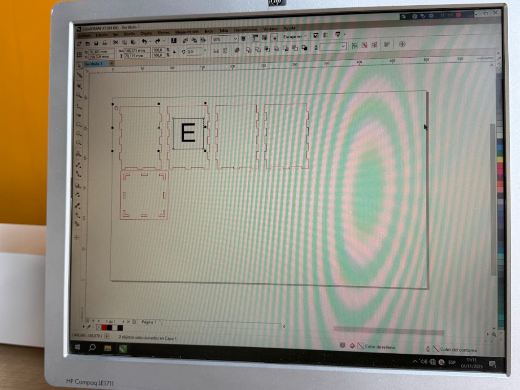 Inicialmente no pude utilizar el archivo DXF que prepare anteriormente. Por recomendación de el jefe de laboratorio, converti el archivo DXF a PDF utilizando Adobe Ilustrator. Finalmente ya pude visualizar mi diseño en CorelDraw.