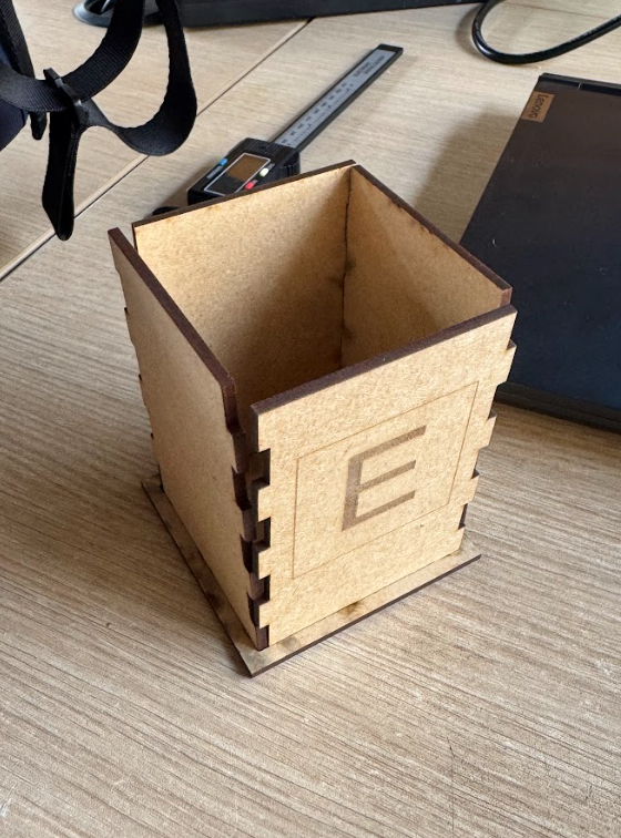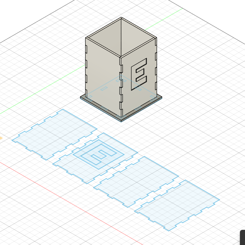 Para este proyecto, decido fabricar un porta lapiceros rectangular de 7x7x10 cm. Al ser mi primera experiencia con diseño y corte laser, no utilizaré superficies redondeadas. Las piezas serán rectas y los encastres seran simples.