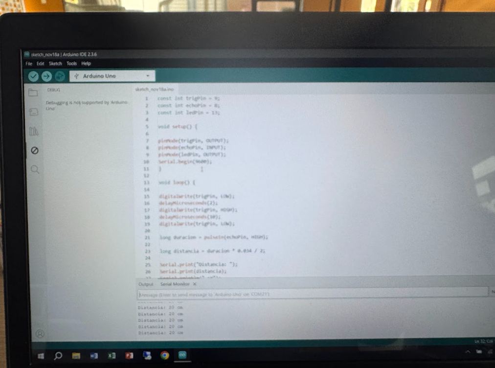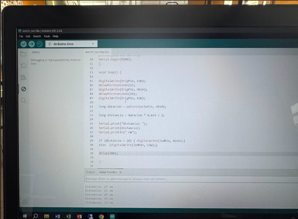 Además, el programa debe mostrar en el Monitor Serie la distancia medida en centímetros.